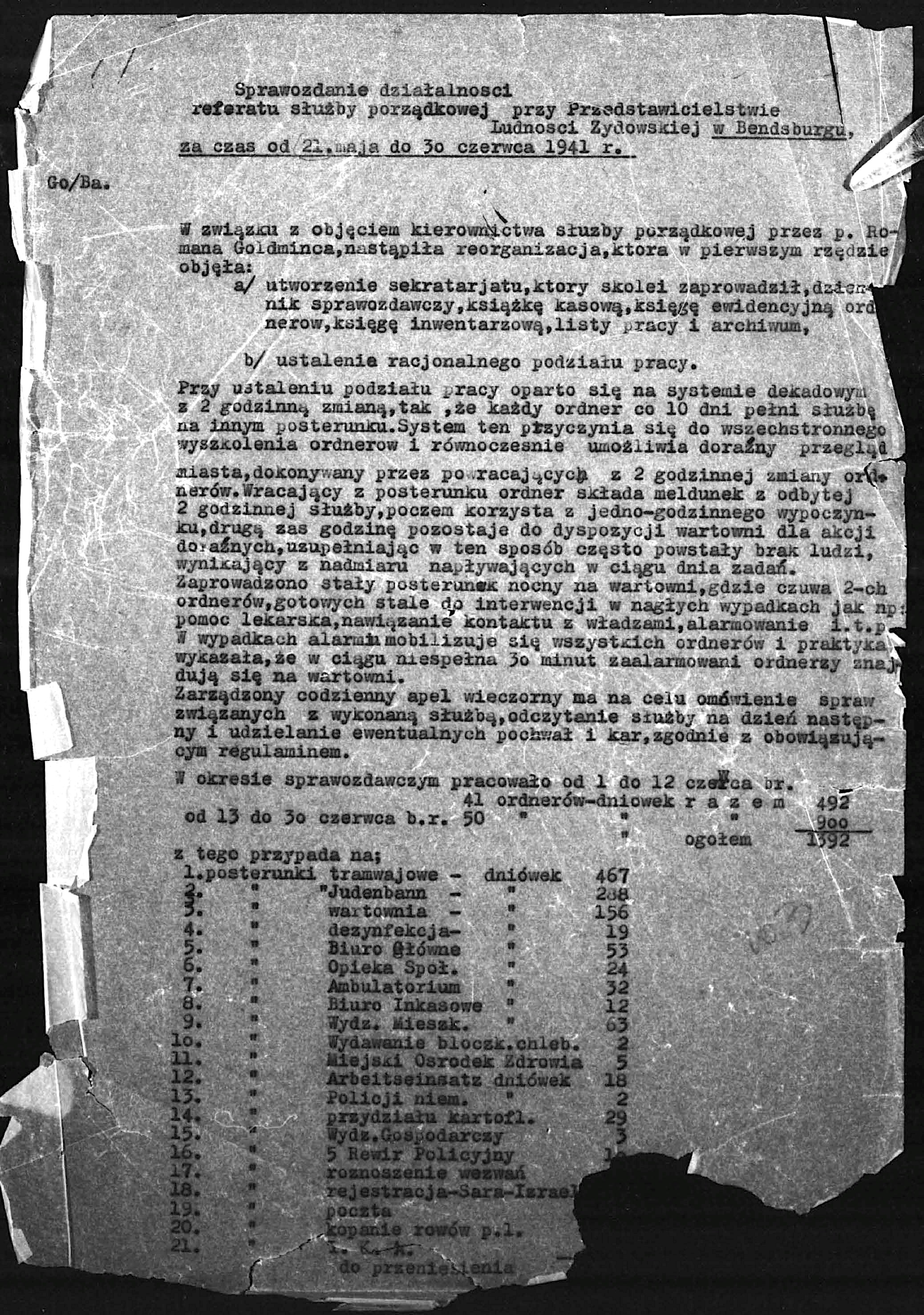 In the morning hours of 10 August, functionaries of the Order Service received an order to carry out inspections in the offices of the Jewish Council and to block from work those persons who did not have certificates proving that they would remain employees of the Jewish Council.